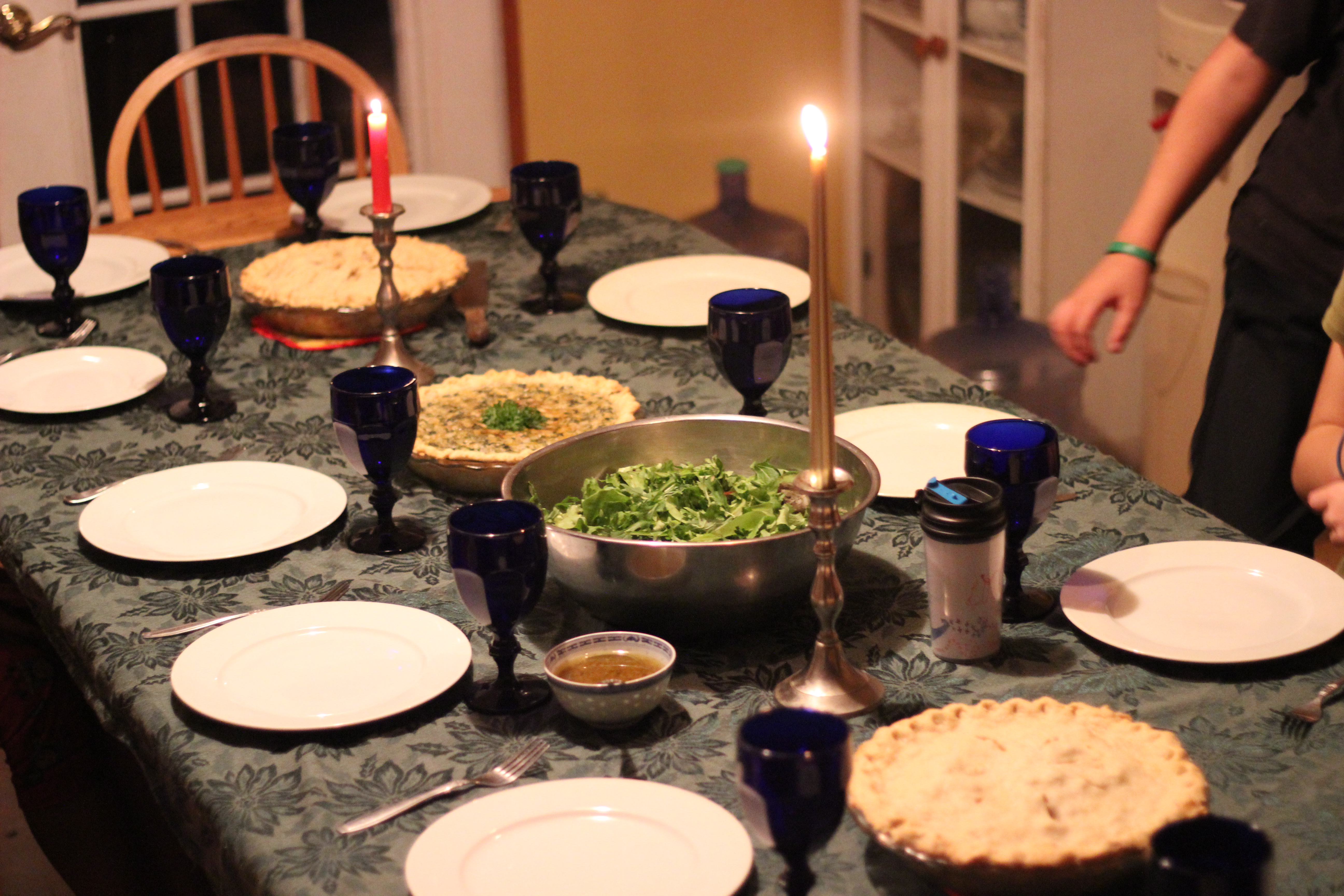 So we started two days early, watching Shakespeare’s Richard II and Henry IV Part One. The next night (the eve of the battle) we watched Henry IV Part Two and feasted, for as the play says, “He that shall live this day, and see old age, will yearly on the vigil feast his neighbours, and say ‘Tomorrow is St. Crispin’s.'” My sister is an expert though amateur historian on the English Kingdom of France and the Wars of the Roses, and she had the brillant idea of having a period-correct medieval feast.
